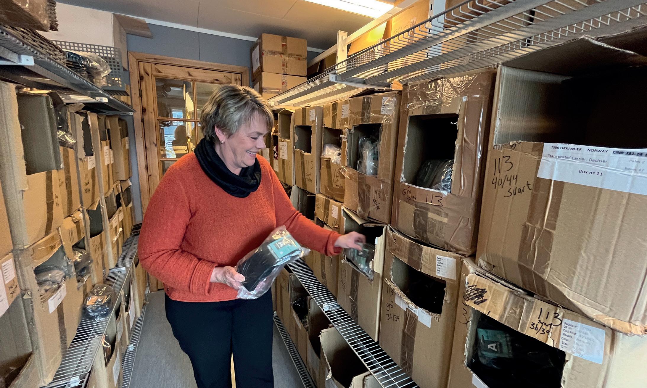 Eva Akselsen har nettopp fått ei bestilling via nettsida, og plukker fram sokkene som skal sendes til kunden.