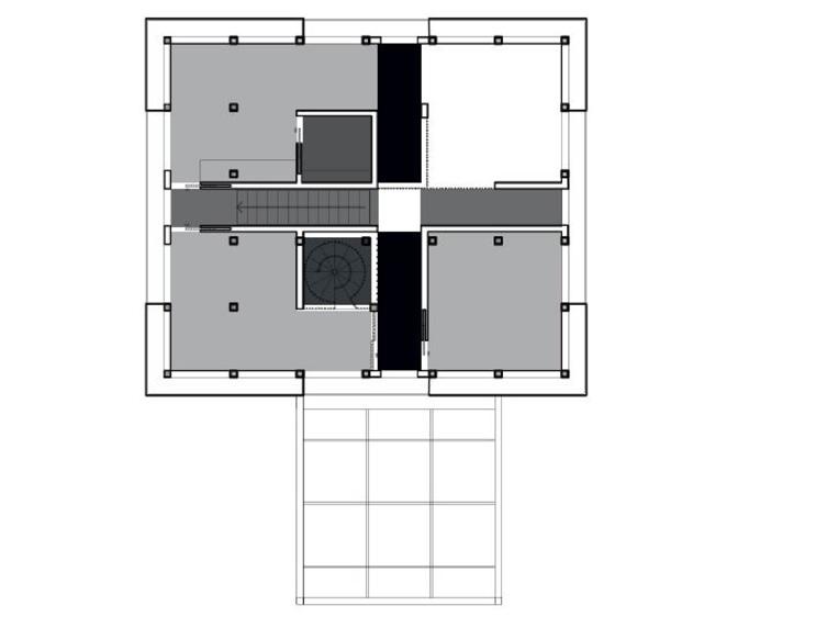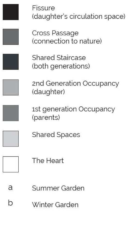 The Compass House proposal envisages the adaptive reuse of an existing concrete structure, organized in a 5 by 5 grid and uniquely aligned with the cardinal directions, to minimize environmental and visual disruption. The design incorporates a modest extension, accommodating a multi-generational family with a strong emphasis on sustainability. Key features include summer and winter gardens, versatile living spaces, areas that facilitate transition, and distinct circulation paths to support diverse family dynamics.