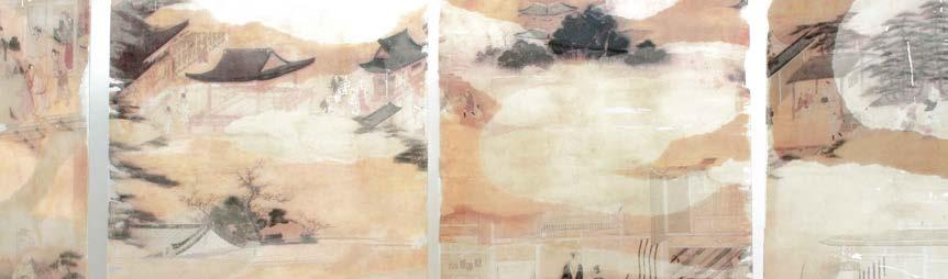 This three day competition at Syracuse School of Architecture, challenged 150 students to “design a space within which to experience and/or view” a landscape of their choice. This project engages a Japanese Shoji landscape, traditionally a six-fold room divider. The painting is of ‘Scenes In and Around the Capital’, a common depiction during the Edo period, with clouds serving as boundary between high-resolution vernacular streets and the landscape and tops of wealthy houses above.