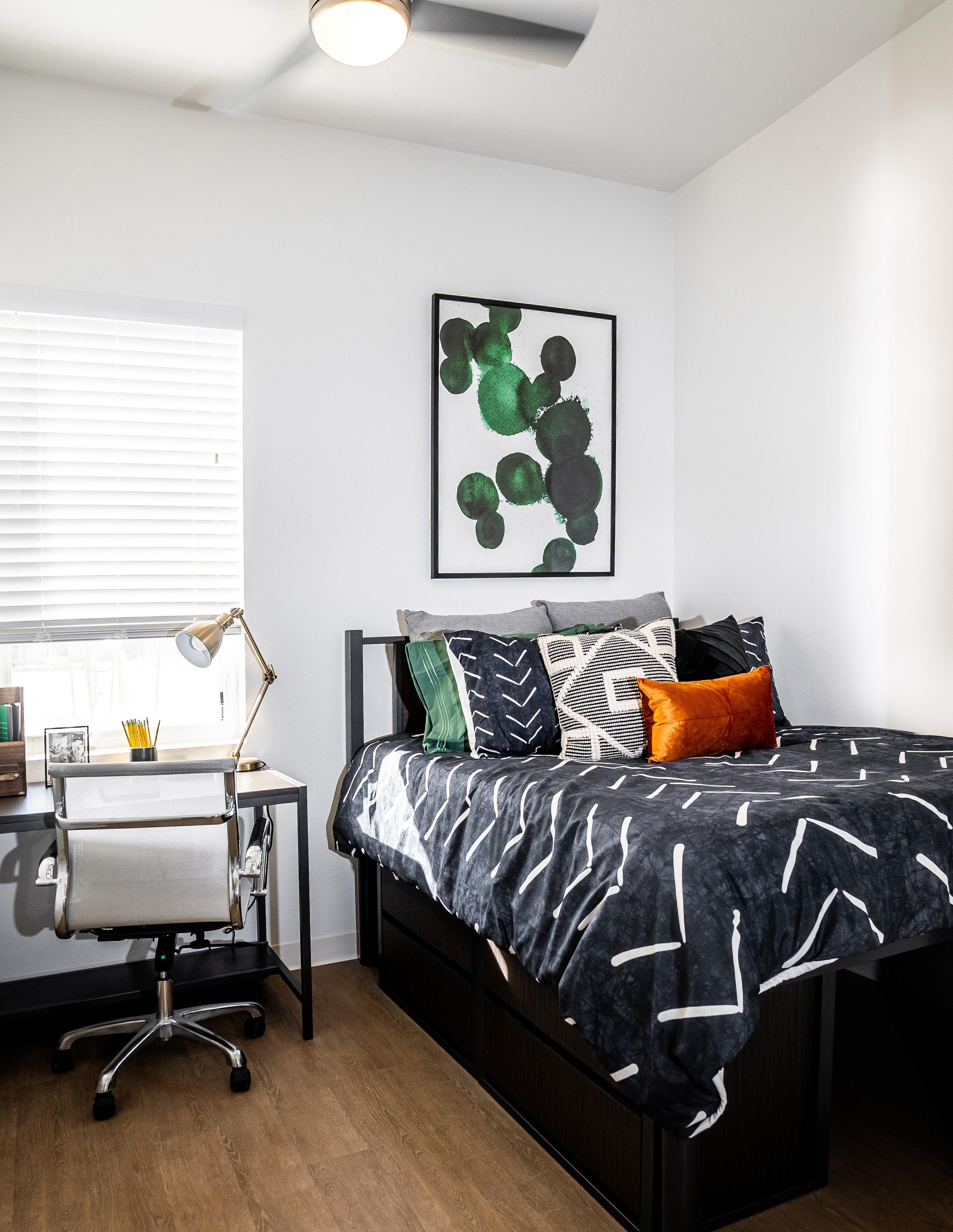 All inclusive. Fully furnished. Residents enjoy a variety of amenities including a swimming pool, basketball court, sand volleyball court and inviting picnic areas, unique among the on-campus apartment communities.