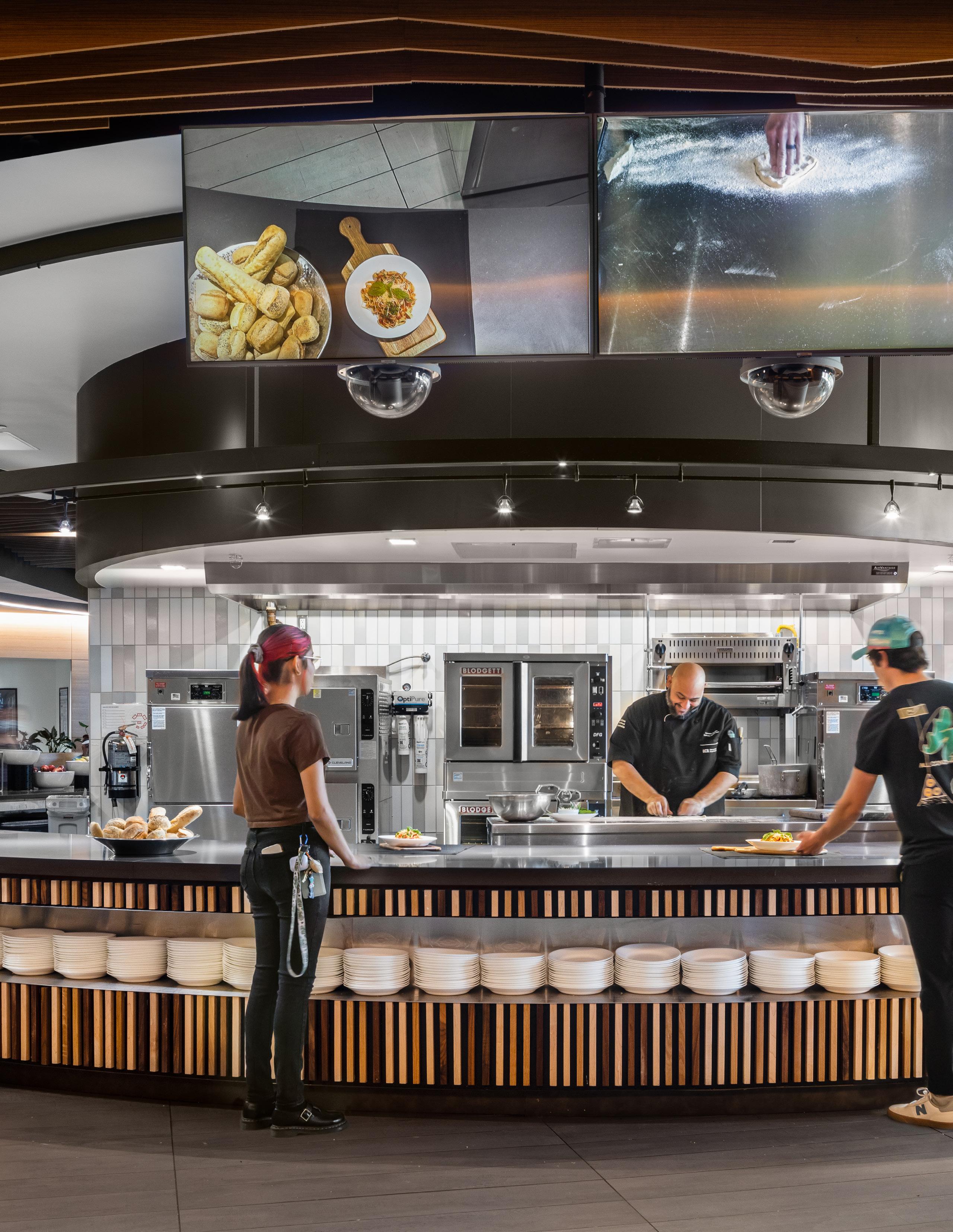 The restaurant at Lothian and the spectacular two-story Glasgow restaurant were designed to create a sense of community — comfortable social hubs focused around food, with high-speed wireless Internet and all-youcare-to-eat meals at multiple food stations.