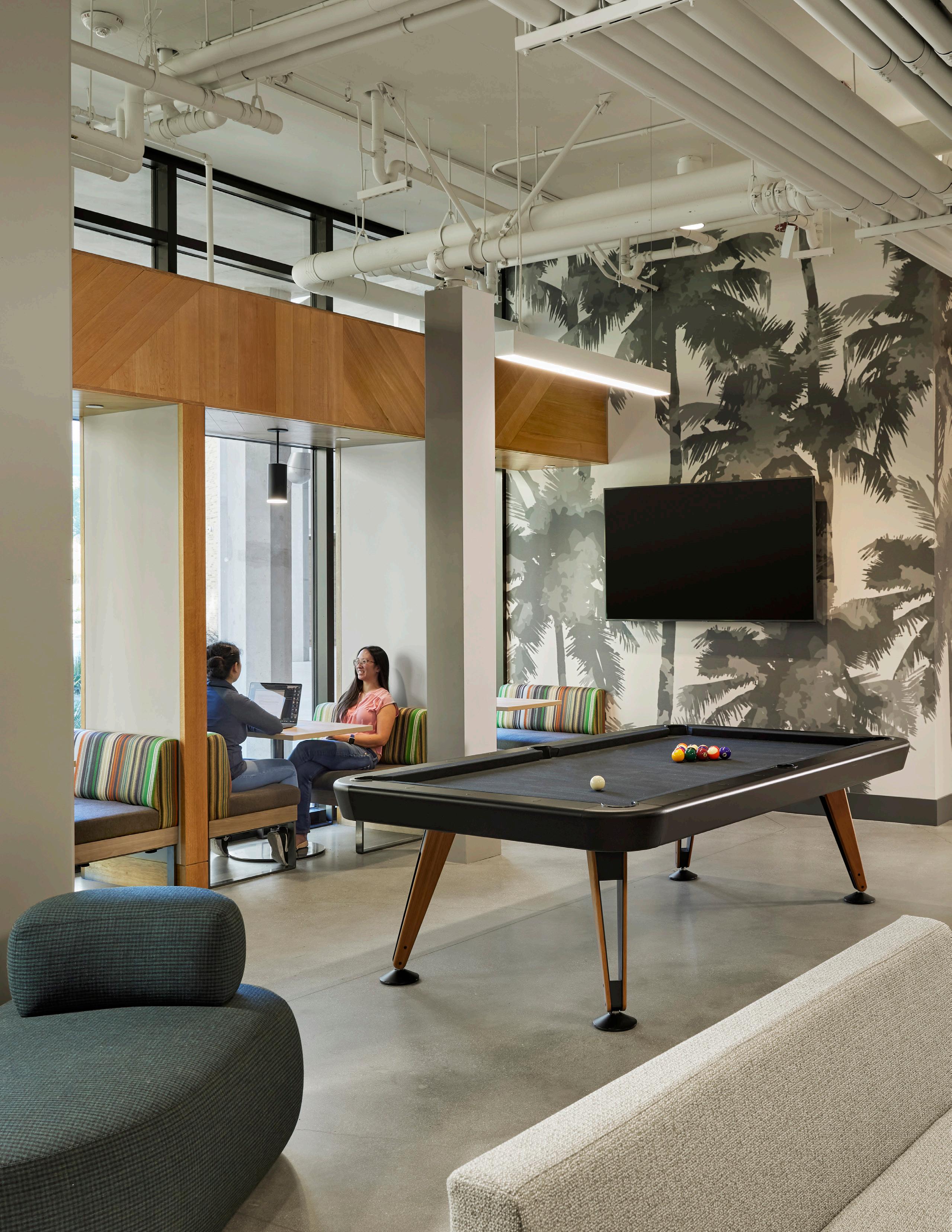 Dubbed “Miami Vice” by students, The Plaza’s turquoise-and-salmon color scheme reflects a “Palm Springs” aesthetic — complete with its resort-like pool. The Plaza offers large, traditional one- and two-bedroom apartments.