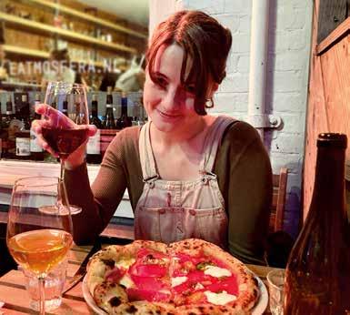 SFEER Het is er druk voor een dinsdagavond. Dat tekent de populariteit, in het weekend zit het hier altijd stampvol. Het is klein en gezellig. We gaan buiten zitten aan een knus tafeltje, daar is het wat rustiger. Onder de warmtelampen hoeven we niet eens een jas aan. Het warme licht en de leuke lampjes maken het extra gezellig. ETEN We delen twee pizza’s. Een bianchi met aspergecrème en prosciutto. Eigenlijk wilden we de vegetarische paddenstoelenvariant, maar dat vergaten we te zeggen. Geen spijt: de ham is zout en vol, het zuurdesemdeeg luchtig, de crème van asperges verfijnd. Onze favoriet is de tomatenpizza La Nostra Marinara. Een perfecte combinatie van gekonfijte tomaten, basilicum, romige stracciatella en frisse kappertjes. Alles klopt, je proeft de verse ingrediënten. Alle wijnen zijn duurzaam, biologisch, biodynamisch en/of natuurwijn. We nemen een oranje en een rode: de oranje wijn smaakt friszoet, terwijl de rode juist donker en wat spicy is. Ze passen bij het eten.
