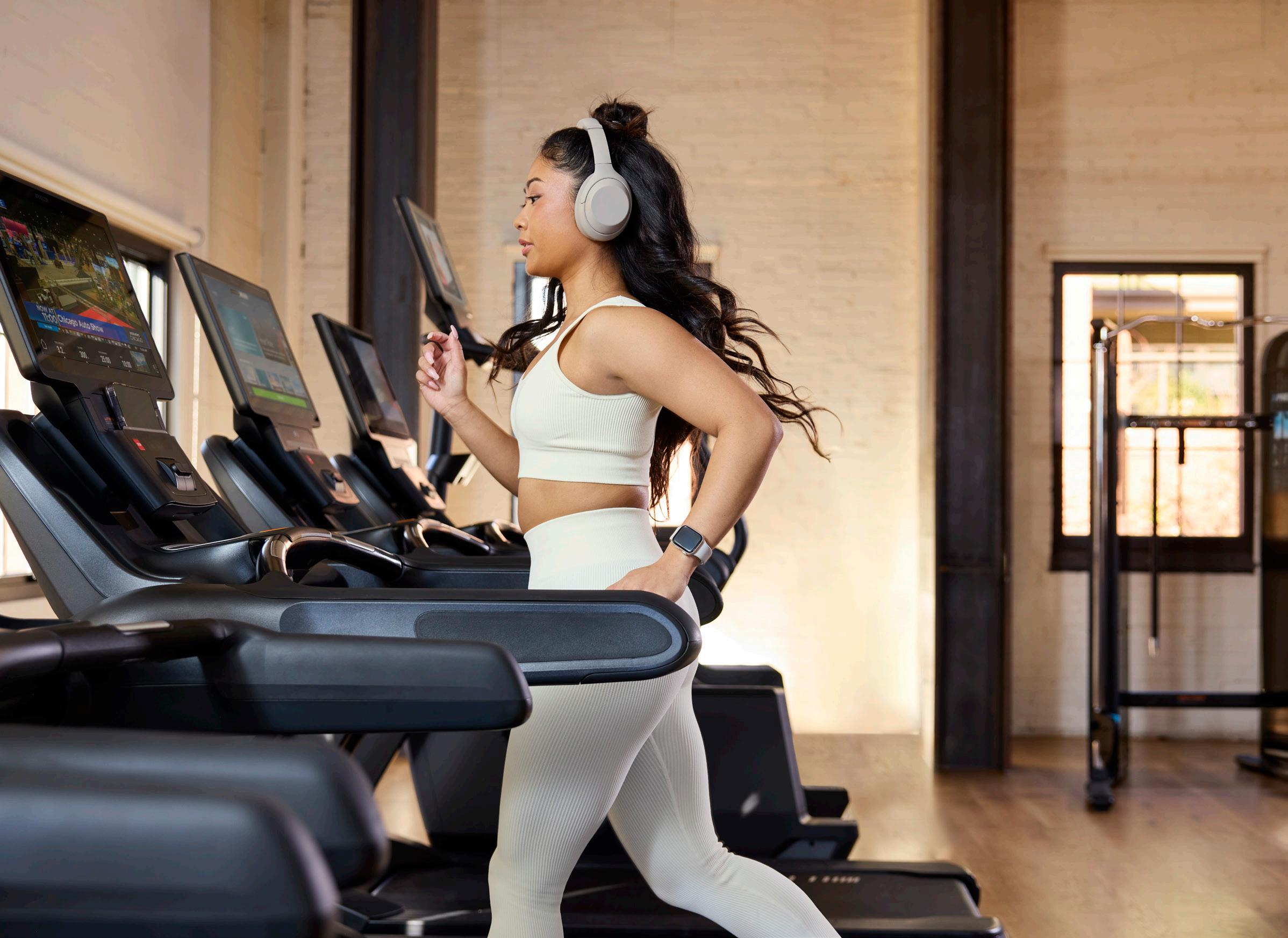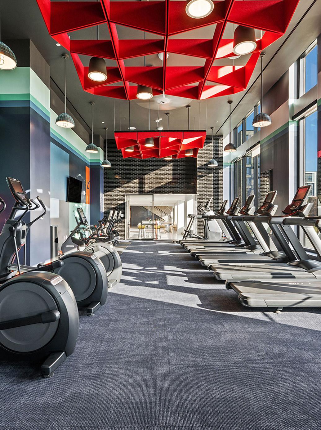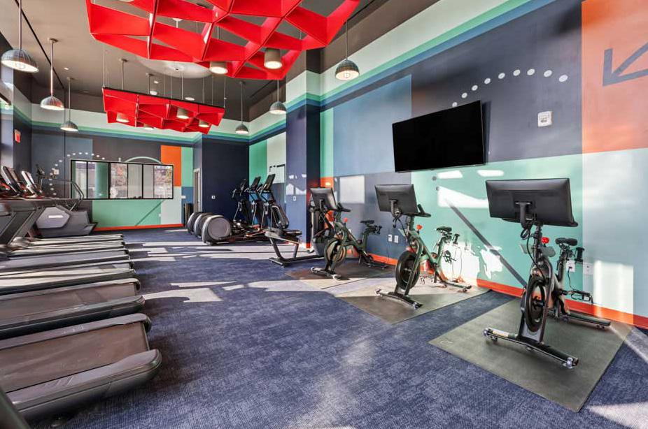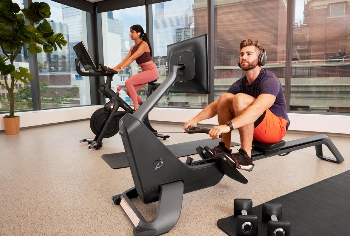 Peloton Bikes, media-integrated cardio equipment, HD screens, and internetconnected machines activate the space with evergreen content.
