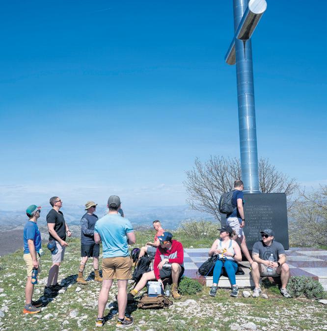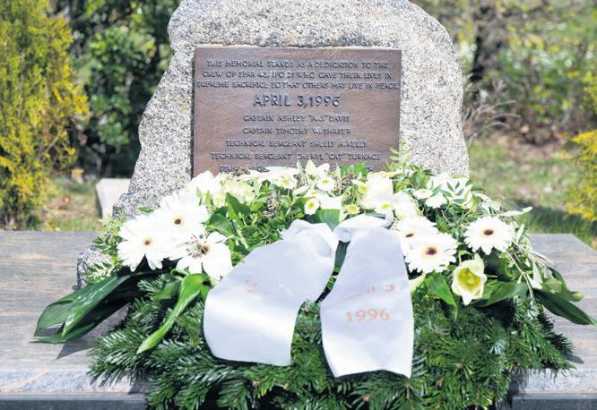 The formal ceremony on April 9, included remarks from squadron leadership, a wreath laying at the IFO-21 memorial, a letter read on behalf of one of the crew members’ widows, and a C-21A flyover. The following day, members of the 76th AS flew to Croatia aboard a C-37 and C-21 before hiking to the crash site, where a large cross memorial bears the names of all 35 people who perished.