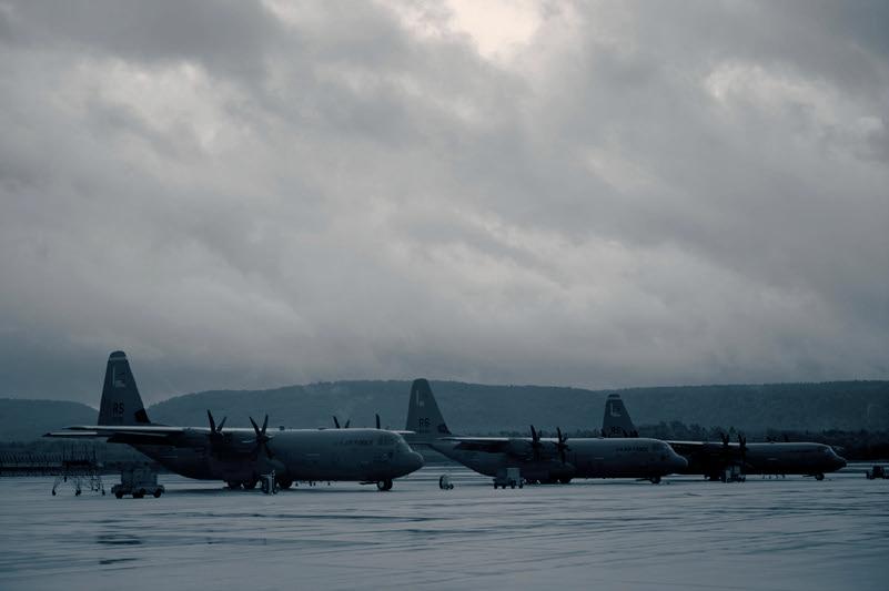 Above and below: Three U.S. Air Force C-130J Super Hercules aircraft sit on the flightline at Ramstein Air Base, June 6. The C-130J is the newest model of the C-130, offering extended capabilities for a wide variety of operations.