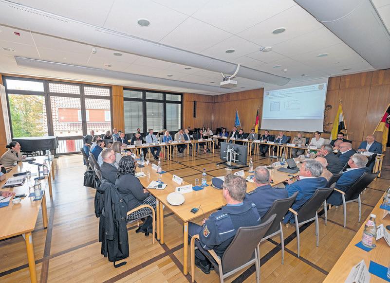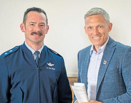U.S. Air Force Maj. Gen. Paul Moga, Third Air Force commander, and Ralf Lessmeister, Kaiserslautern County Commissioner, pose for a photo during the 2025 annual Mayors’ Forum at Kaiserslautern, May 5. Photos by Airman 1st Class Dylan Myers