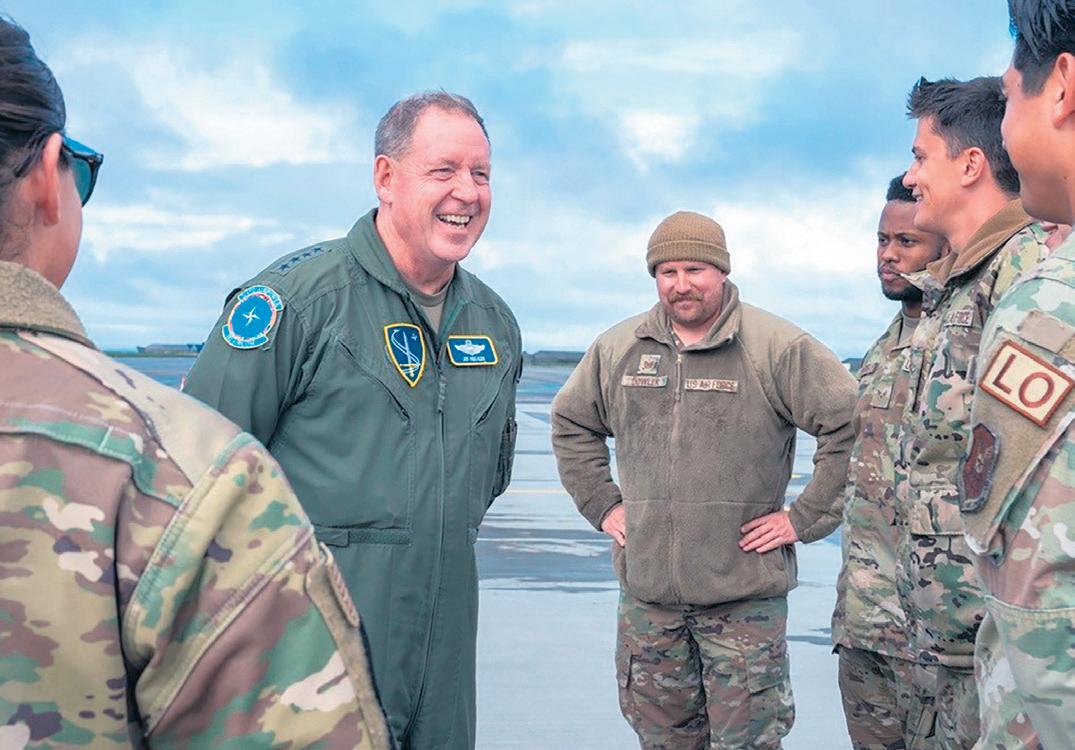 Brig. Gen. Stephen Snelson, U.S. Air Force Expeditionary Center commander, and Chief Master Sgt. Dennis Fuselier, USAFEC command chief, visited Airmen from the 728th Air Mobility Squadron at Incirlik Air Base, Türkiye, April 14.
