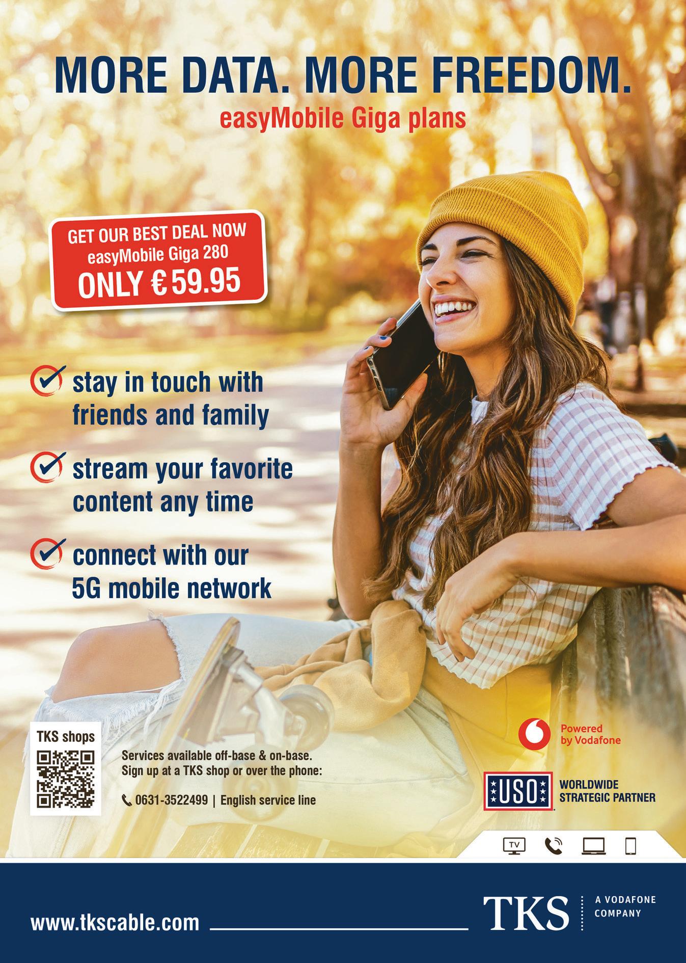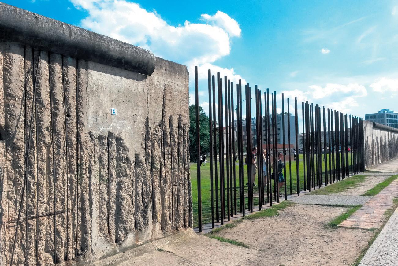 One original block of the Berlin Wall was moved to the traffic circle at the Kaisers-lautern Military Com-munity Center on Ramstein Air Base, in 2021. The section of the wall was preserved and set in place by Airmen from the 86th Civil Engineer Group, with the western side with colorful graffiti symbolizing free “West Germany” and the backside the former East German state.