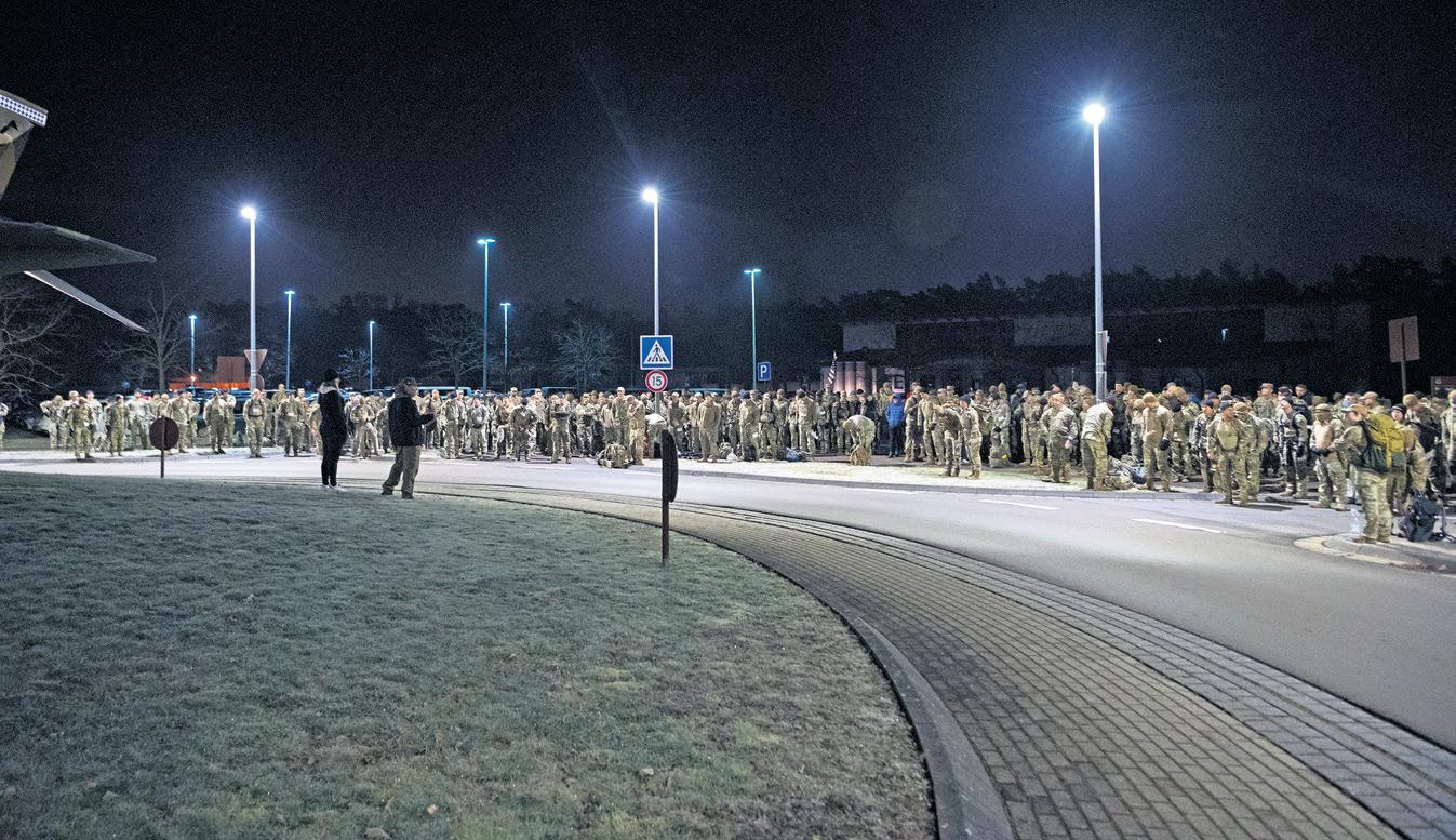Participants receive a safety brief prior to the start of the 2025 Norwegian Foot March at Ramstein Air Base, March 1. The Norwegian Foot March was introduced to the Norwegian Armed Forces in 1915 as a culminating training event for new conscripts and infantry soldiers.