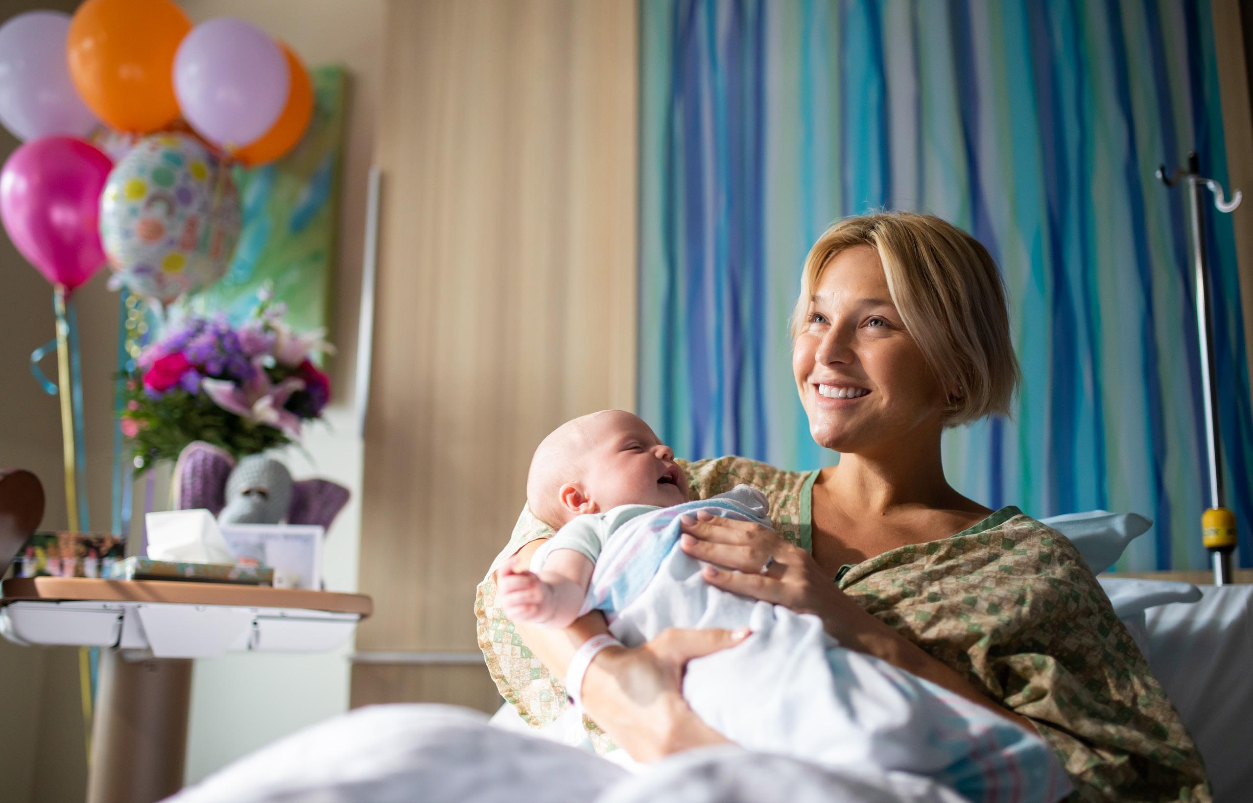 Moms and babies stay in the same room, a best practice for bonding called “rooming-in.”