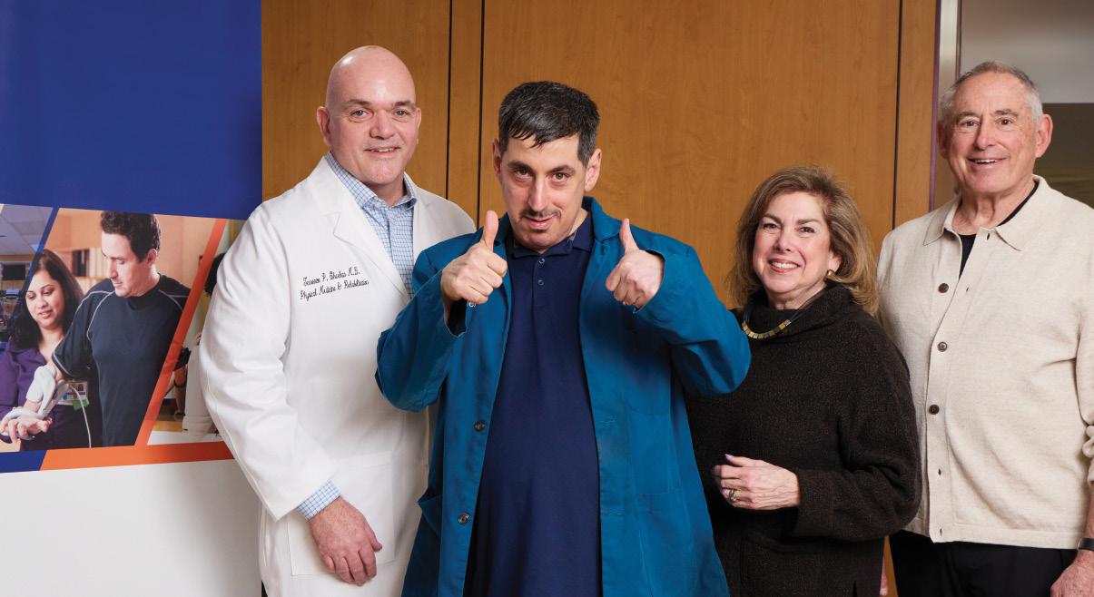 From left, Dr. Terrence Sheehan with his patient Mike Leener and Mike’s parents, Dina and Jerry. Mike is walking again thanks to Dr. Sheehan and the team at Adventist HealthCare Rehabilitation.
