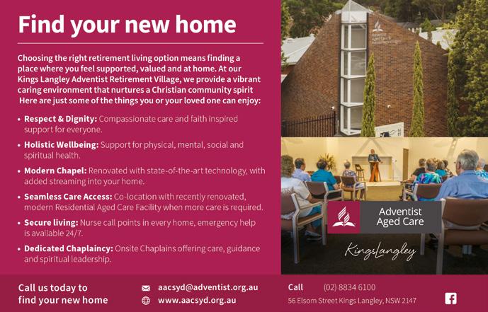 Past and present members and friends are invited on Sabbath, March 14, 2026, for a commemoration service and potluck lunch. For more details or to RSVP go to facebook.com/ ParkesSDAChurch or phone 0428 641 156 or 0407 708 709.