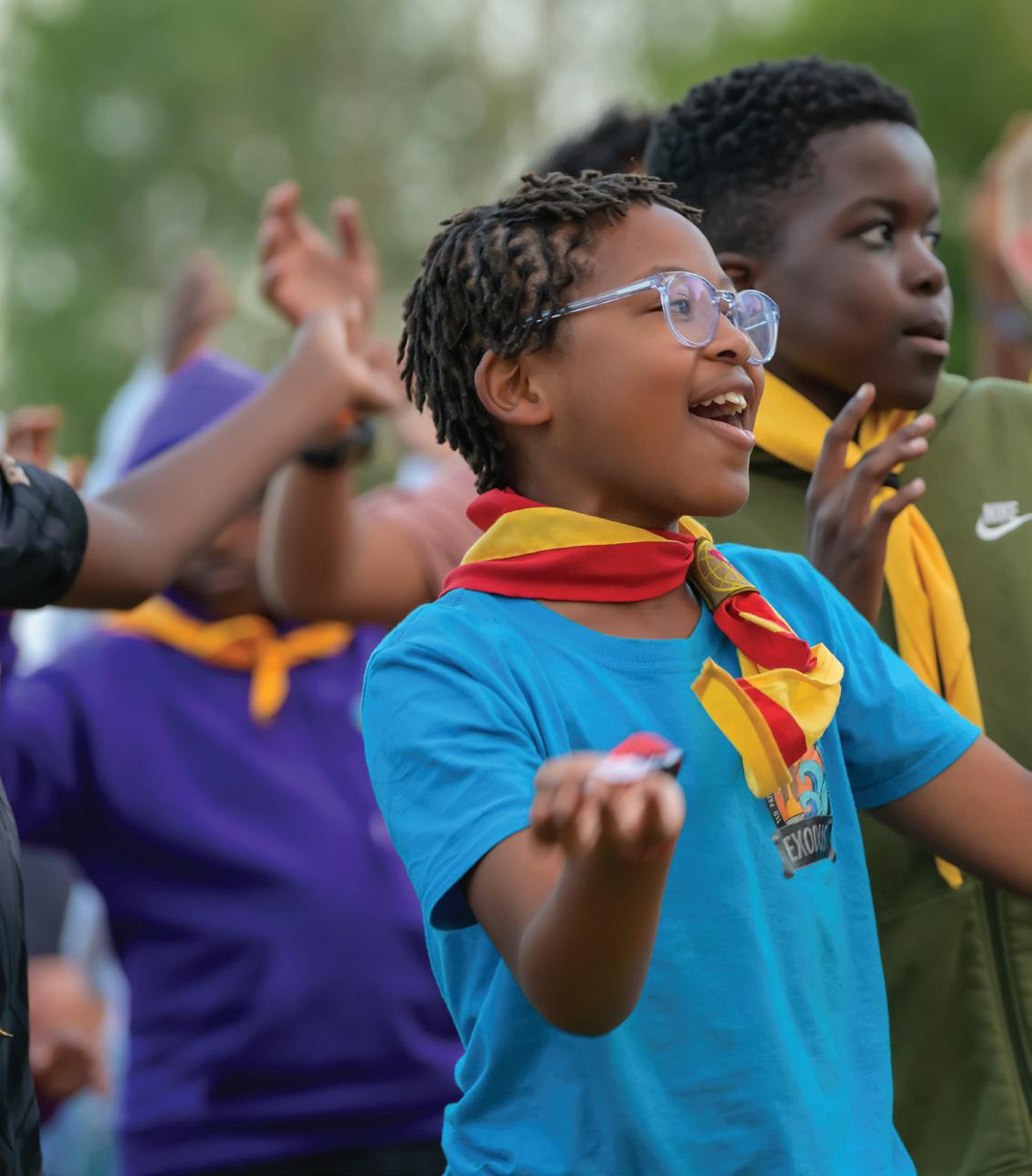 Alex, 12, and his friends from a London Pathfinder club praise God in song at the evening worship service July 27 at the Trans-European Division Pathfinder Camporee. More than 2,600 Pathfinders attended the camporee in Sopron, Hungary.