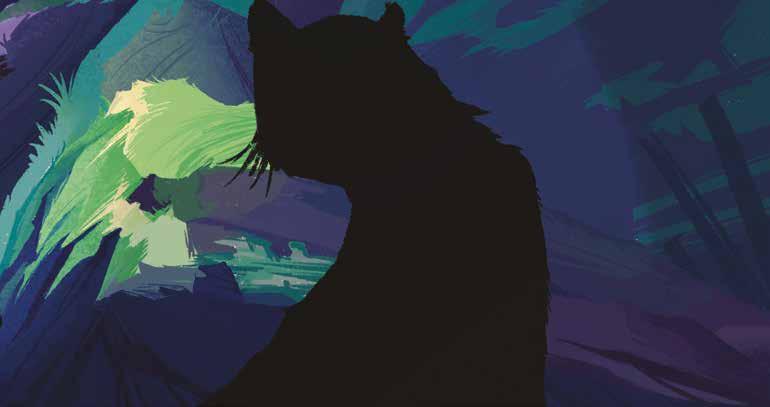 Wahrscheinlich ist es nur ein Reh, dachte Vixie und versuchte, ruhig zu bleiben. Kein Grund, sich Sorgen zu machen. Sie versuchte, wieder einzuschlafen, aber sie hörte das Geräusch erneut. Diesmal näher. Sie nahm all ihren Mut zusammen und spähte aus dem Unterschlupf, um nachzusehen, was es für ein Geräusch war. Zuerst war es zu dunkel, um etwas zu sehen, aber als sie es dann erkennen konnte, bekam sie einen großen Schreck. Es war kein Reh. Es war ein Berglöwe! Und sie schlief in seiner Höhle!
