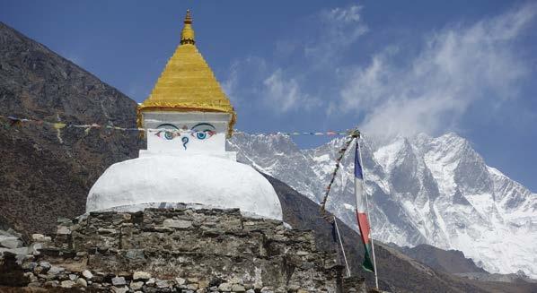 Gorak Shep. Taking our time is important as it gives us ample opportunity to take in all the sights as we acclimatise to the high altitudes. A climb of Kala Patar rewards us with exceptional views of Mount Everest and its neighbours, Nuptse and Lhotse. The next highlight is a visit to Everest Base Camp itself.