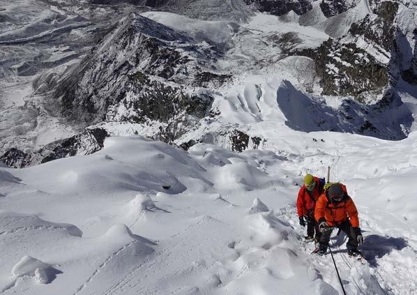 The climbing is protected by fixed rope that our guide and Sherpa team will have fixed prior to the ascent. Our early start (around 2.30am) sees us climbing the South East Ridge, which is a mixture of rock, snow and ice climbing. Your guides will climb with you throughout the ascent to assist you towards the goal. On the upper mountain the angle increases and here we climb the icy slopes using crampons on our boots. We will utilise the security of fixed ropes that we attach ourselves to with an ascender to our harness for safety.