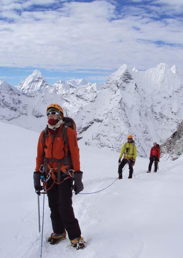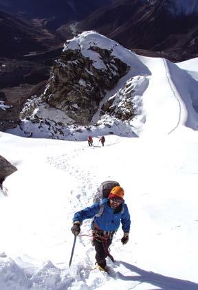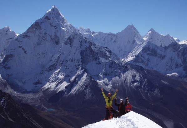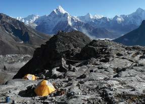 fixed rope that our guide and Sherpa team will fix ahead of the ascent. The High Camp is dramatic with exceptional views towards Cholatse, Taweche and Ama Dablam, especially at sunset when the peaks turn pink as the sun sets into Tibet. We climb to the far eastern summit on the summit ridge, a subsidiary of the high peak.