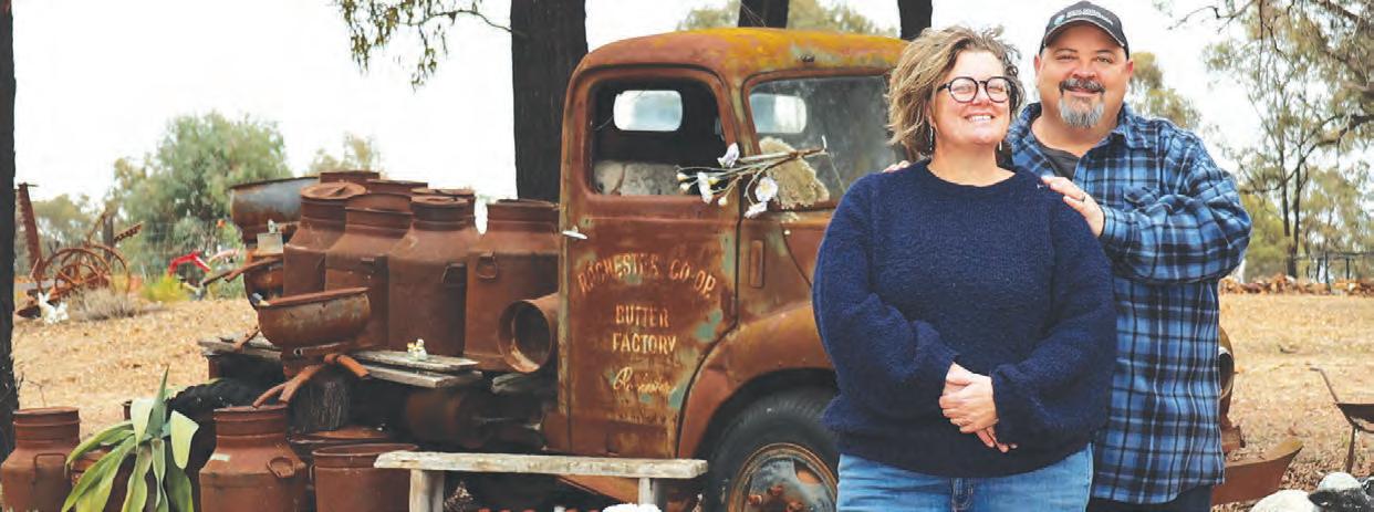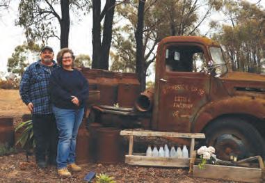 were Kay and Steve’s (pictured) motivation for relocating to their weekender in Whroo, just outside Rushworth, following the COVID lockdowns. Four years on, the couple has made significant progress transforming their 50-acre property into a permanent, off-grid residence. They’ve also launched several microenterprises to one day support their self-sufficient lifestyle—growing food, raising animals, and living free from utility bills. An exercise in pursuing a genuine desire for independence and a values-based way of life, Kay and