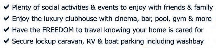 The village also provides convenient amenities for those with recreational vehicles, and boats. There are secure, lock-up caravan sheds available, along with dedicated parking spaces and a wash bay.