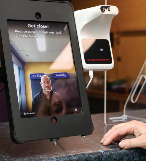 OFFERING CUTTING-EDGE TECHNOLOGY... Mark Liversidge (on screen) demonstrates visitor management technology from Insight Protection Solutions door Keeper monitor range. Photo: Kelly Carmody