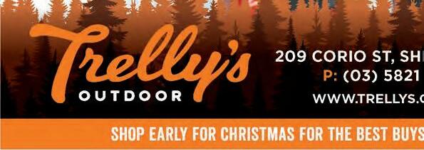 244 Wyndham Street, Shepparton 5821 4679 61 Bridge Street, Benalla 5762 6150 www.purdeys.com.au Not valid with any other in-store promotion. See store for details. KRUEGER’S 22 Colliver Rd, Shepparton 5821 5414 kruegersfinemeats@gmail.com FREE Home Delivery $18.99* All local Australian Pork guaranteed. kg on the bone ORDER NOW FOR CHRISTMAS While Stocks Last SHEPPARTON HOLISTIC & PSYCHIC EXPO SUNDAY 11TH DECEMBER SHEPPARTON SHOWGROUNDS 10am - 4pm Buy tickets at the door and pay by cash or card or online at... bodyandsoulmarket.com/tickets-shepparton • Psychic Mediums • Tarot Card Readers • Healers • Crystals • Candles • Jewellery • Books • Witchy Products • Diffusers AND SO MUCH MORE!