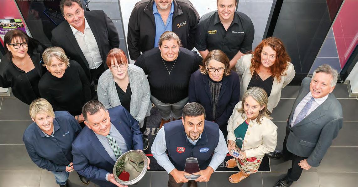 AWARDS... Back row from left, Milena Miller from WDEA Works, Craig Comline from Triple M-Southern Cross Austereo, Wayne Sutton from the Shepparton Club, Adam Denny from Harvey Norman Computers. Middle row from left, Wendy Crow from The Shepparton Chamber Of Commerce, Sarah Forte from GV Health, Ingrid Thomas from Greater Shepparton City Council, Elizabeth Capp from LaTrobe University, Sharon Kerry from Greater Shepparton City Council Environment Department
