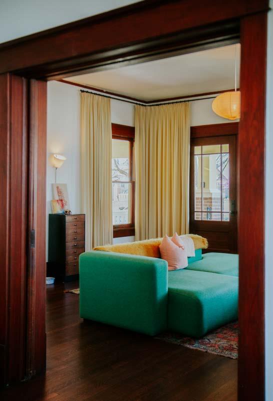 A cathedral-window quilt made by Sarah Gill’s maternal greatgrandmother that hangs in her dining room. Read more about her Winnetka Heights home on page 25. Photography by Lauren Allen.