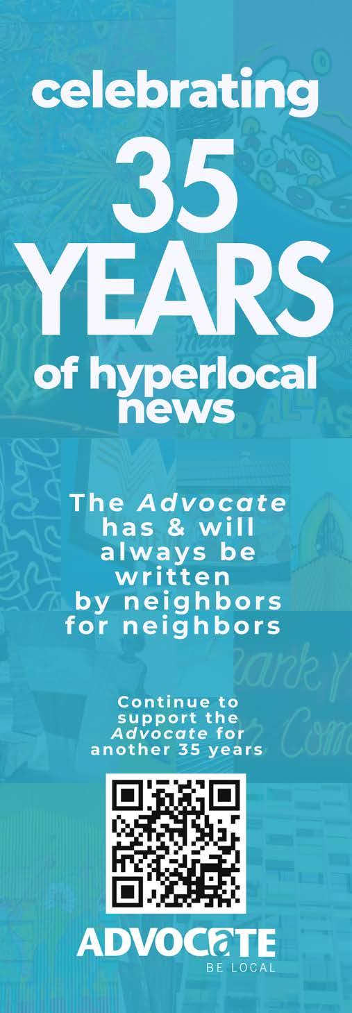 Even after 35 years, when you pick up a copy of the Advocate or read our websites or email newsletters, we hope you continue learning something about our neighborhood and our neighbors. And hopefully yourself.