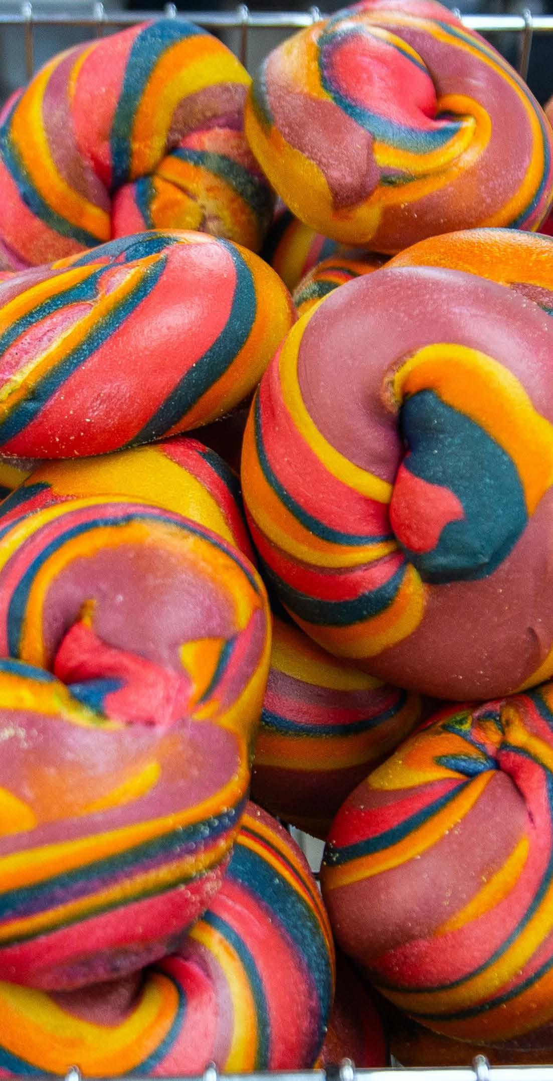 Preston Hollow’s K&L Bagels rainbow bagels ($3.25) are a weekend-only specialty item. Read more on page 14. Photography by Lauren Allen.