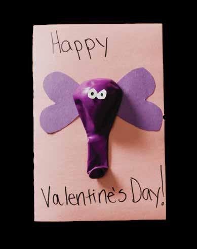 One deflated balloon, cardstock (white, the balloon color, and one accent color), scissors, glue stick, and tape. How to make it: Fold a sheet of cardstock in half to create a greeting card. Use rolled tape to attach the deflated balloon to the front—this becomes the elephant’s nose. Cut two hearts from matching cardstock to create ears and glue them on each side of the balloon. Add small white circles for eyes and draw in details if you’d like. When it’s time to gift the card, the balloon can be removed and inflated for extra fun!