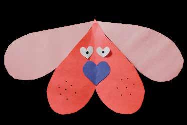 Cut two large hearts from different colors of paper. One heart will be the puppy’s face. Cut the second heart in half to create floppy ears. From another color, cut a smaller heart for the nose, and use white paper to make two tiny hearts for eyes. Turn the large heart upside down so the point becomes the chin, then glue the ears to the top corners. Add the eyes and nose, and let your child draw on extra details like freckles, a tongue, or spots. These are adorable on the fridge or taped into a Valentine card!