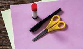 Construction paper (white plus two other colors), scissors, glue, and a black marker.
