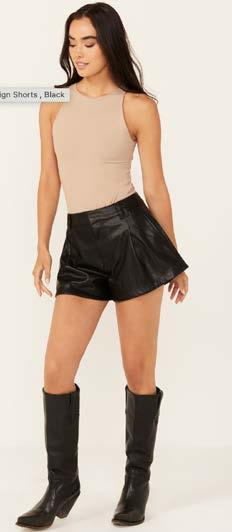 Think edgy with a little bit of cowgirl flair. You could combine a simple graphic tee with a pair of high rise, faux leather shorts and statement boots. If you’re not into the statement boots, then you could opt for a more bold top or jacket and then build your outfit around that.