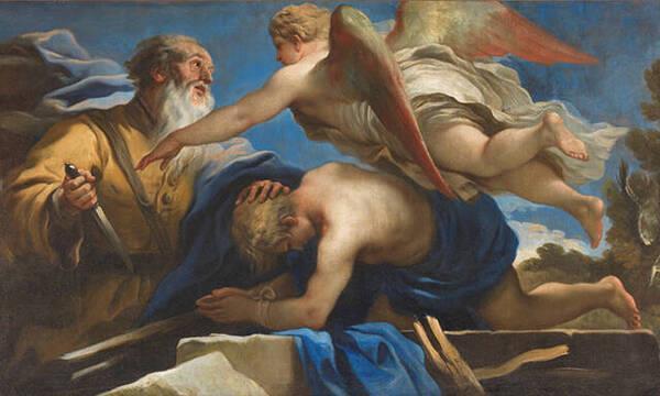 como las estrellas del cielo y las arenas del mar. El Señor le pide que vaya con Isaac y le sacrifique en el Moriah. Abraham obedece. Cuando extiende su brazo y empuña el cuchillo para degollar al retoño de un gran árbol que llenaría la tierra, un ángel grita: “Abraham,no lehagas nada, porque ahora he visto queenverdad,temesaDios, puespormínoperdonasteatu hijo,atuunigénito”(Gen 22,1112). El Señor le renueva la promesa.