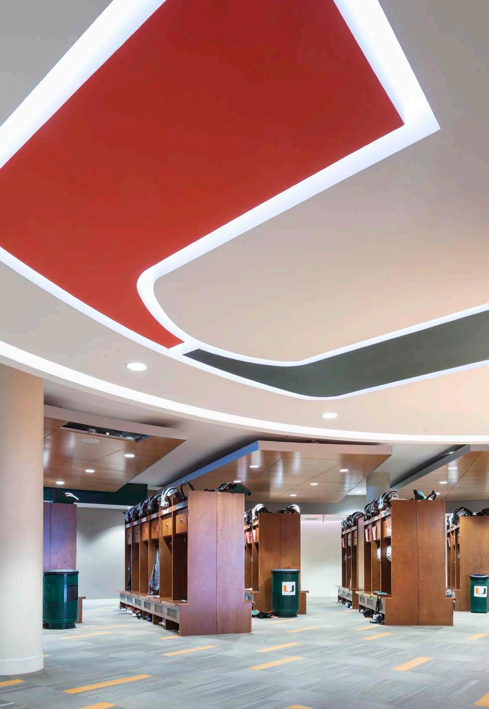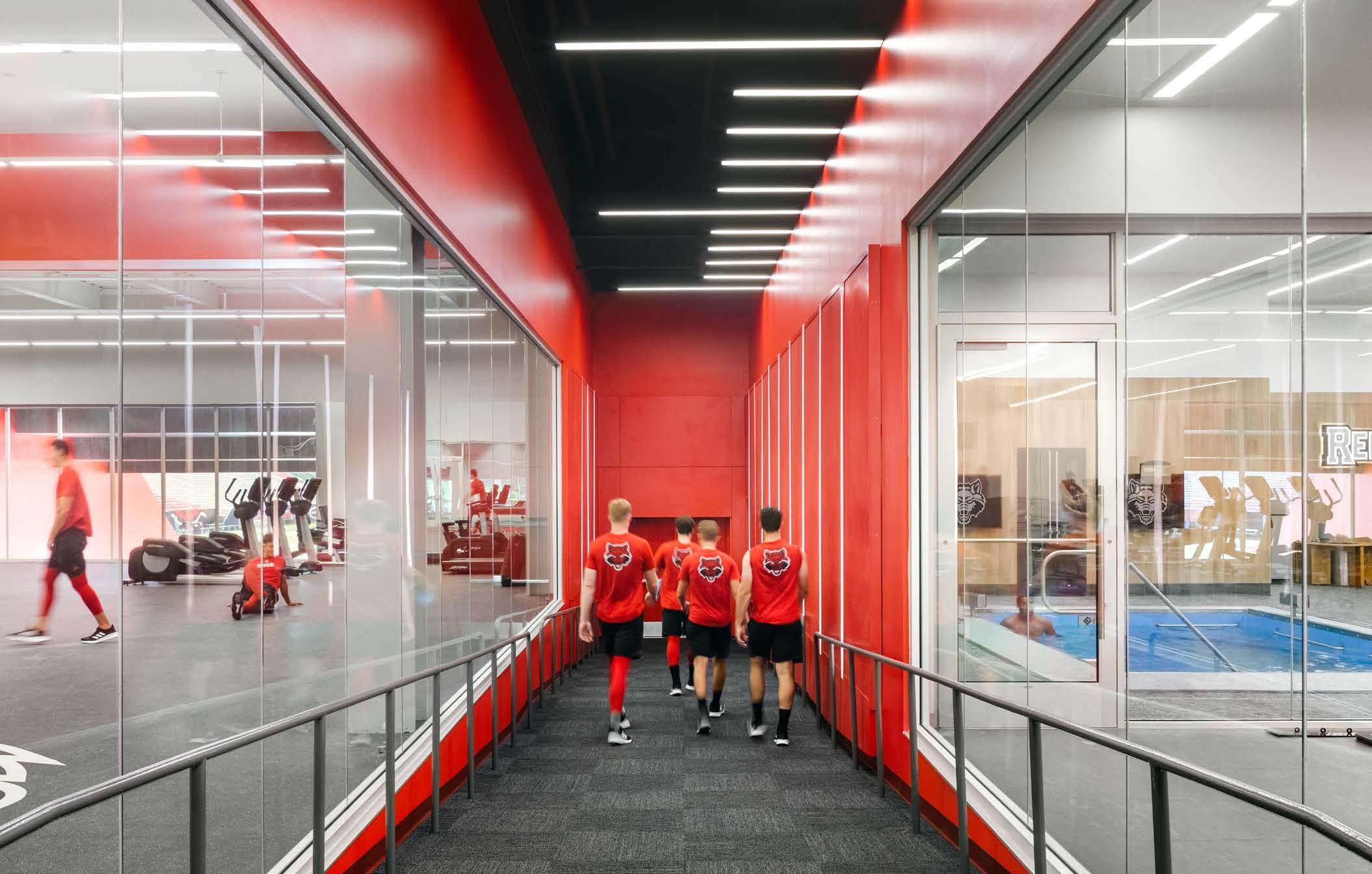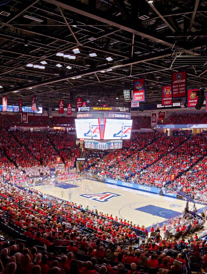 Phase I consists of 600 new club seats and new club amendments to the seating bowl in two corners to create super-voms and new AV enhancements, including ribbon boards. The building’s exterior was also reimagined, with a new building addition to the arena creating dramatic entry and arrival experiences for fans and a new dedicated student entry providing a fresh but contextual image for the 40-yearold structure. Concourse enhancements include renovated concessions and addition of new grab-n-goes and renovated restrooms.