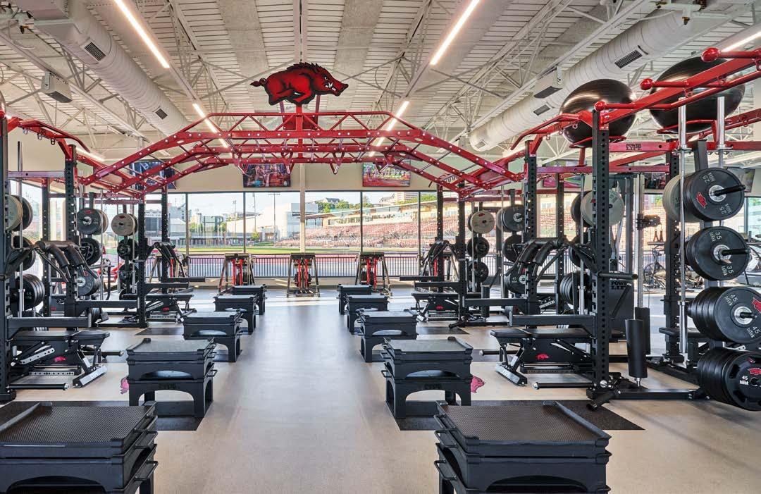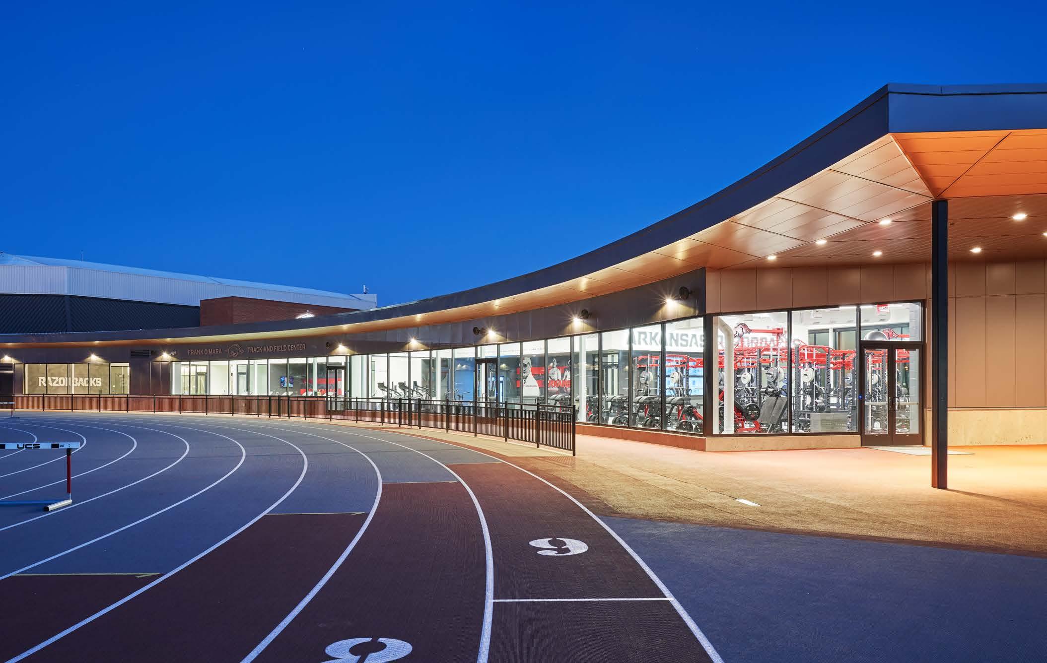 In partnership with Hufft, AECOM designed the 21,770-sf high-performance center for the Arkansas Razorbacks Track & Field/Cross Country programs, providing essential practice and meet-day facilities.