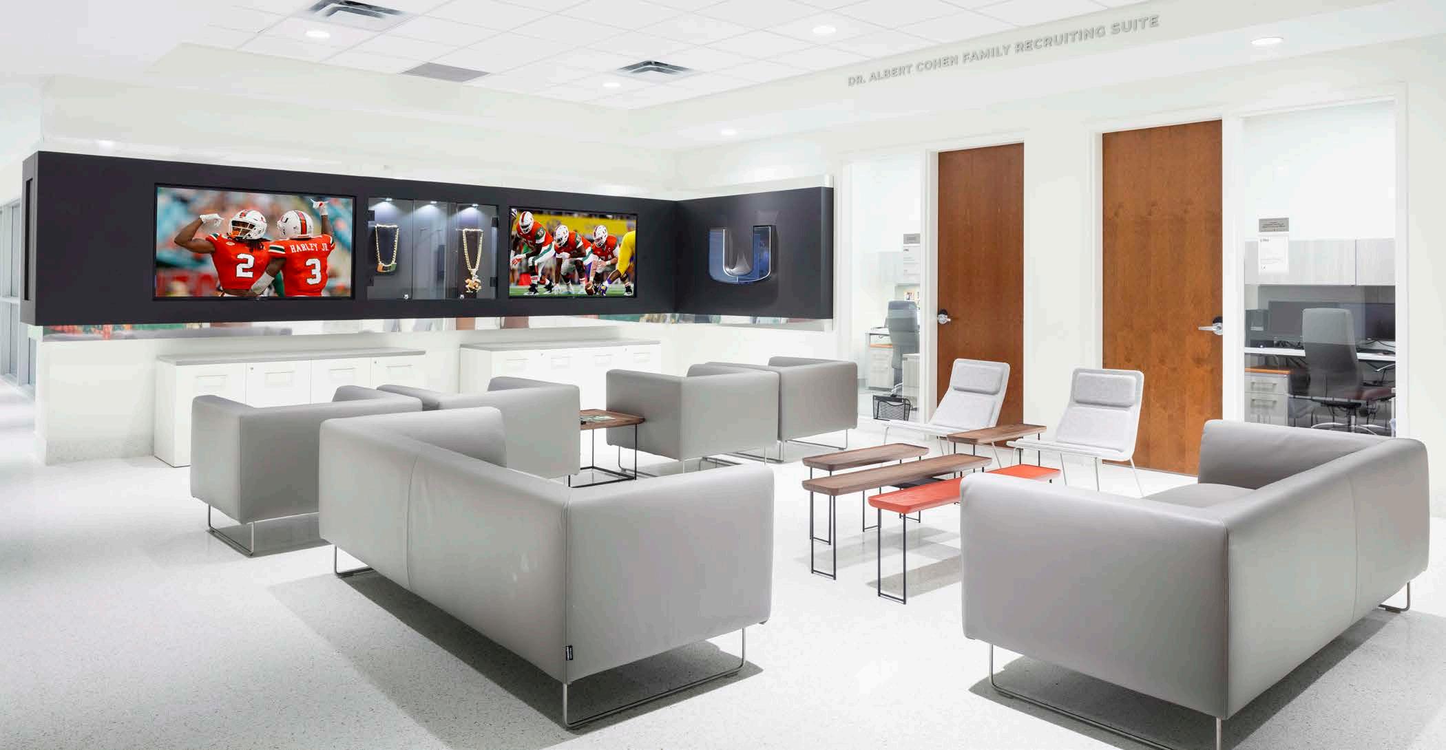 AECOM conducted a study to expand office and player support space within the Fred Smith Football Center, addressing the undersized facility with new areas for staff, dynamic recruiting spaces and team meeting rooms to maintain competitiveness.