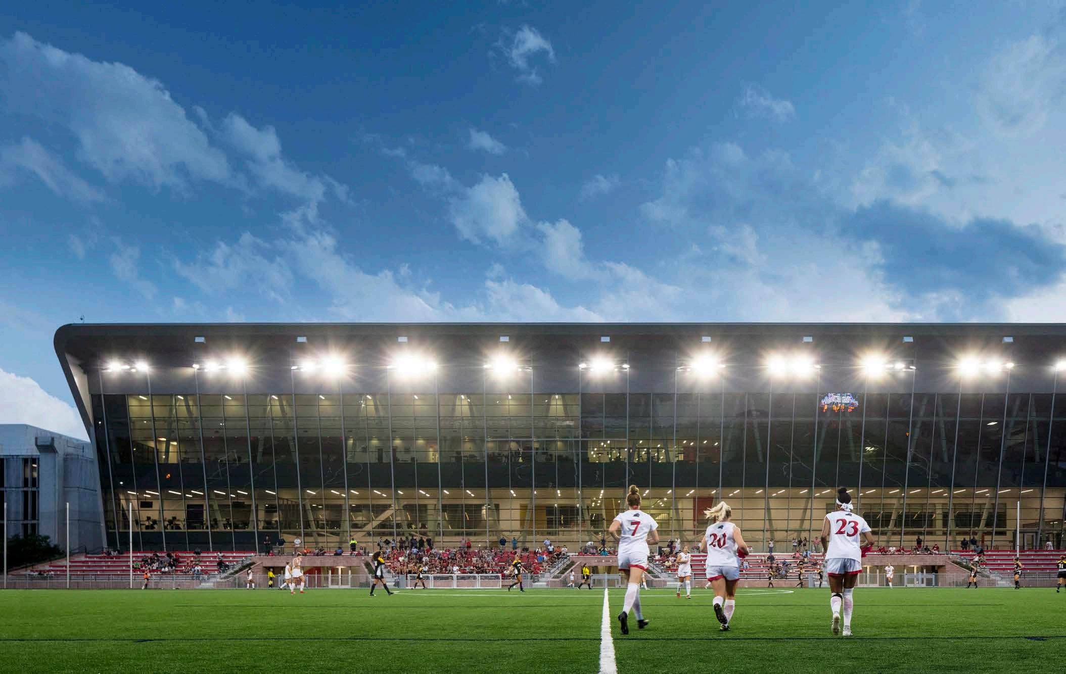 Building on the soccer program’s success, AECOM’s plan addressed the declining press/suite tower by expanding spectator seating, creating a unified team building for both women’s and men’s programs, and meeting competition and practice requirements.