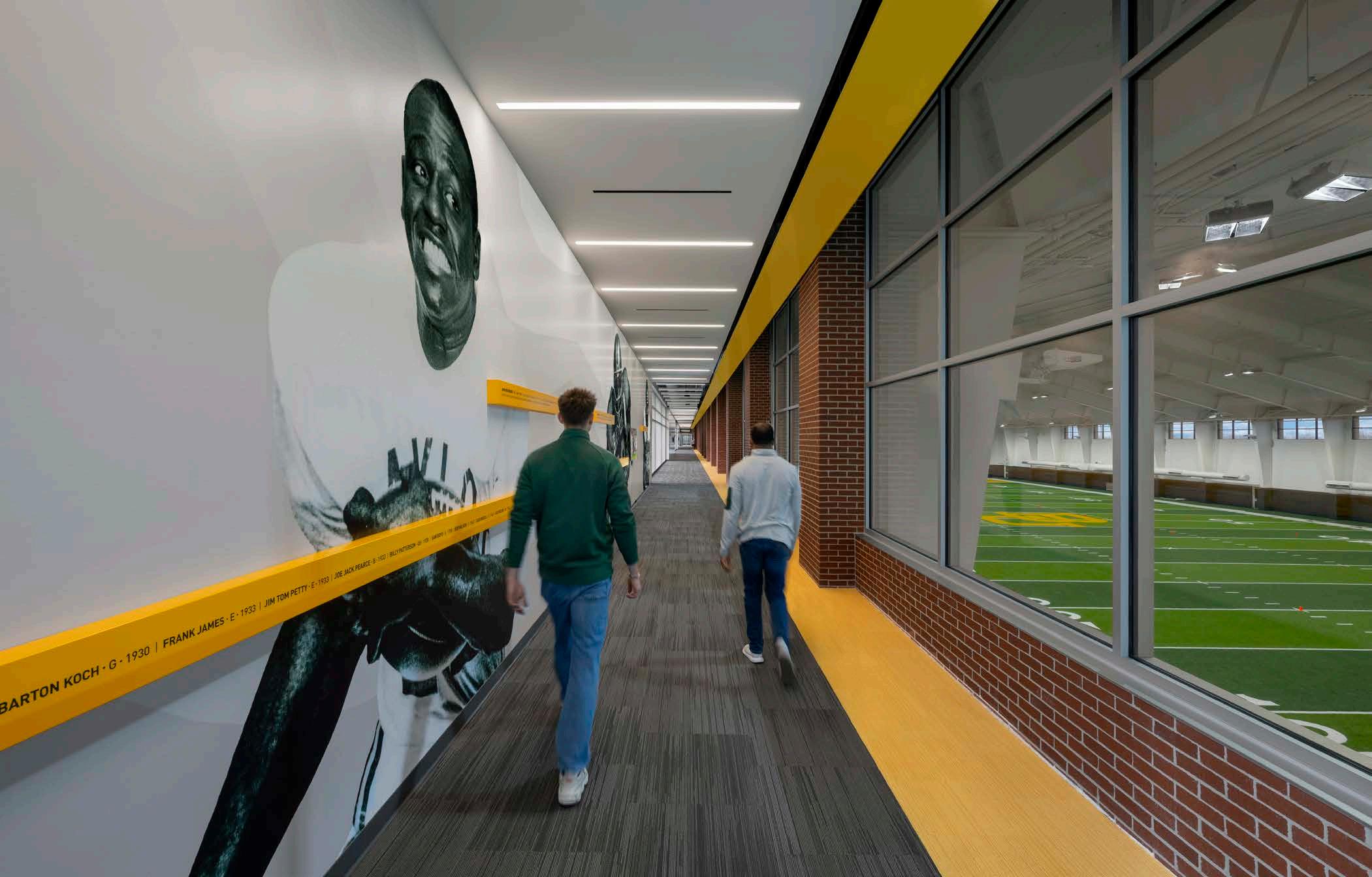 Expansion of the existing 80-yard indoor complex to a full 100-yard field, including improved connection to adjacent outdoor turf fields. The project will feature a walk of champions celebrating past athletes and coaches, creating a unique football campus with nutrition, academic and bioperformance lab facilities.