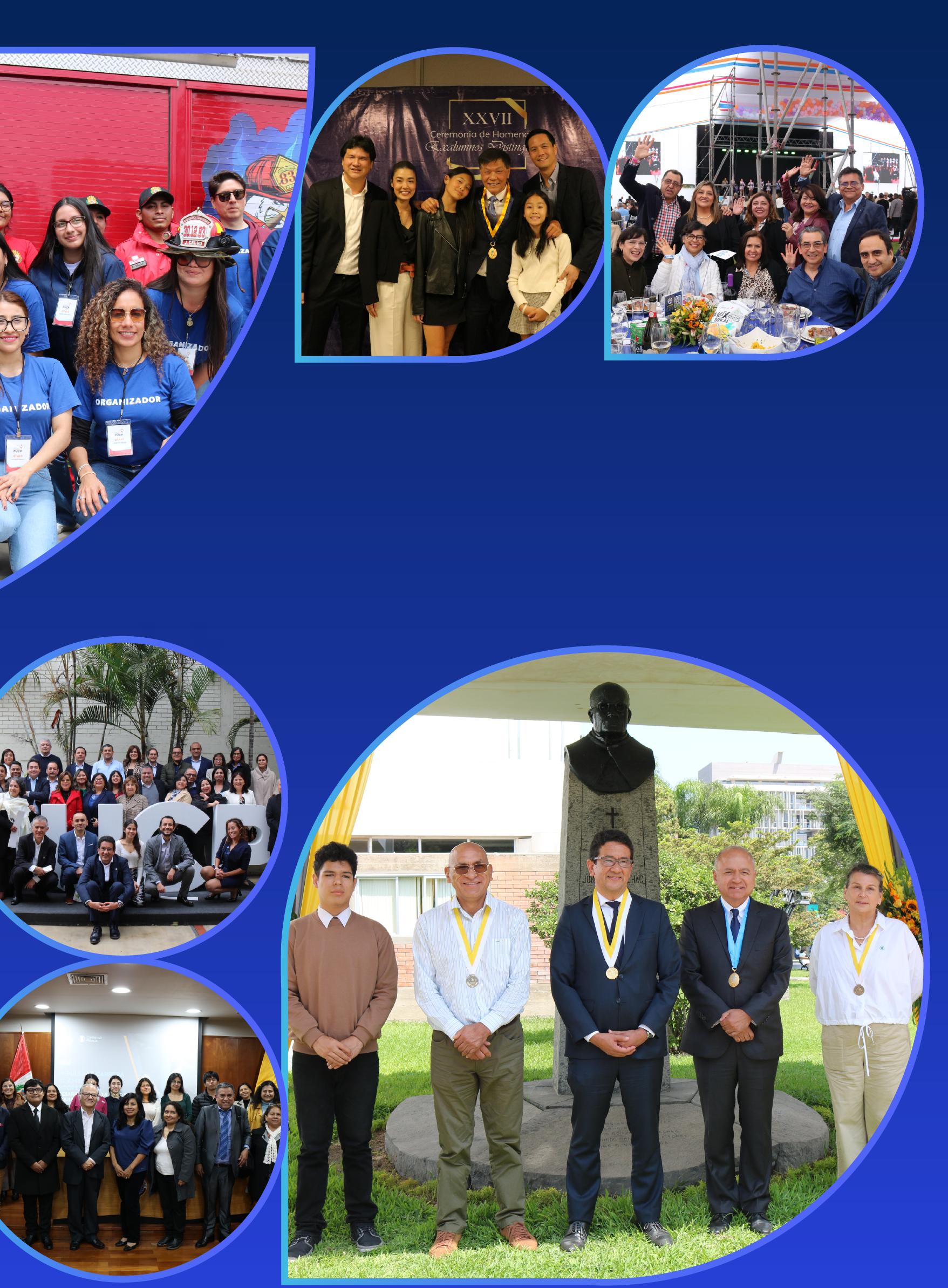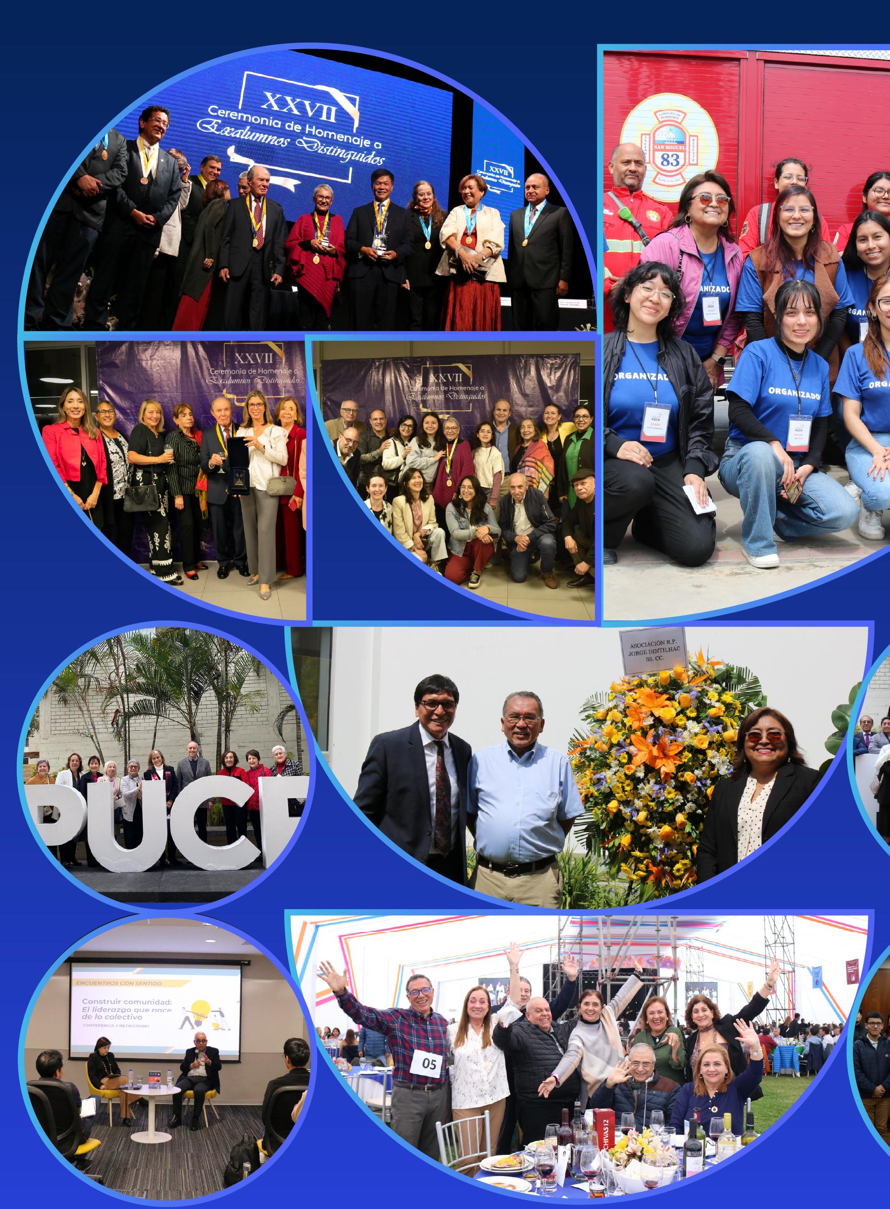 con profundidad lo que significa la PUCP. Cada uno de ustedes representa liderazgo, entrega y compromiso, y su trayectoria es un legado hermoso que le podemos dejar a la comunidad y al país.” Entre aplausos y sonrisas, la ceremonia evidenció cómo nuestra alma máter sigue siendo un espacio que forma no solo profesionales, sino también ciudadanos comprometidos con la sociedad. Con este homenaje, desde la Asociación de Egresados y Graduados reafirmamos nuestra misión de mantener el vínculo, celebrar la excelencia y motivar a futuras generaciones a dejar su huella en el país.