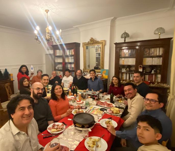 El pasado 14 de diciembre, la Comunidad Alumni PUCP en Francia, bajo la coordinación de Liliana Pérez, realizó una reunión presencial de fin de año en Versalles. El encuentro tuvo como objetivo reforzar los lazos de confraternidad entre sus miembros durante la época navideña, en una animada “Raclette Party”, donde compartieron queso fundido sobre papas sancochadas, jamón, buen vino y, sobre todo, la alegría de disfrutar buenos momentos entre Alumni PUCP.
