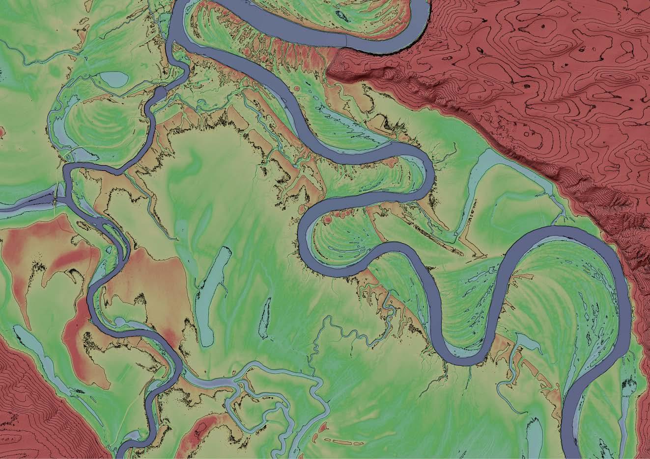 These products are made possible as LiDAR has the ability to penetrate through vegetation and measure the ground surface below, thus providing an accurate measurement of ground surface elevation even below the tree canopy and revealing the regional topography of the landscape.