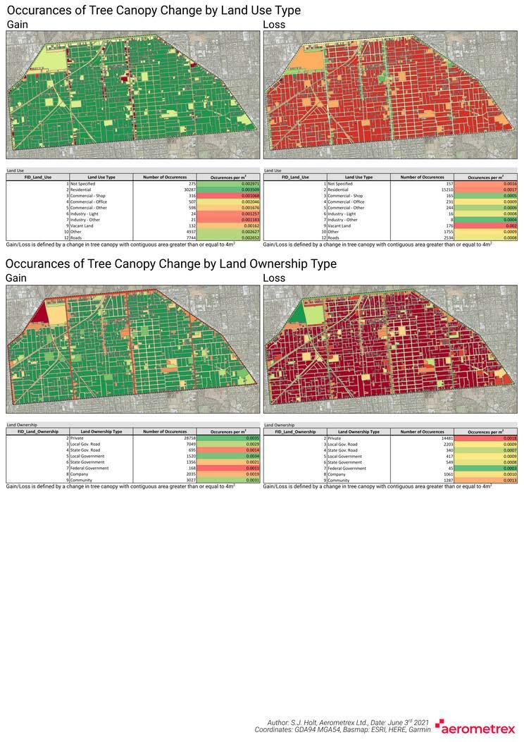 Derivation of vegetation metrics from LiDAR is accurate, cost-effective, and repeatable. It is also free of errors associated with perspective effects which are common to other technologies such as aerial imagery. Comparison of these datasets across time can help understand the degree to which tree canopy is changing across the urban landscape. This is critical to assess the effectiveness of tree canopy management and in adapting them to future challenges. Detailed statistics can be generated that summarise the extent and location of tree canopy gain or loss. Building construction and demolition can also be spatially linked to tree canopy changes.