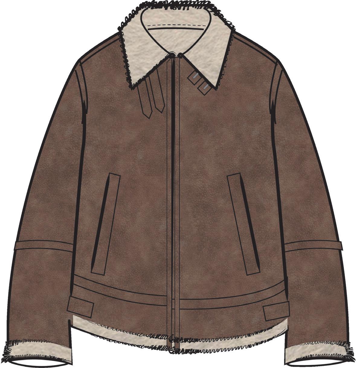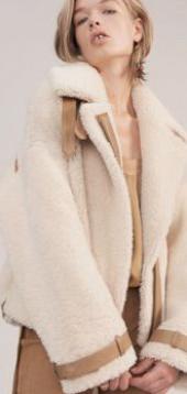 Garment made of eco-sheepskin, a solution that replicates the feel of real leather through the use of synthetic materials.