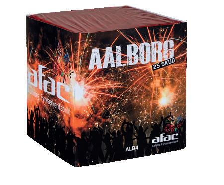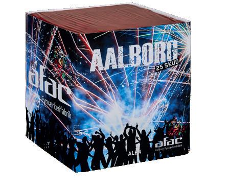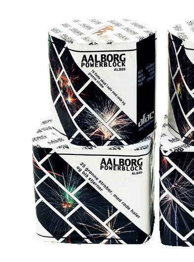 TILBUD 18 1 pakke BR3 Thunderking, 2xARB0525 bomberør, 2xTPC18 bomberør og 2xAKR0820 kometrør. Normalpris 439,65 kr. VARENR. TILBUDSPAKKE 18 NEM 313 GRAM | 40 SKUD I ALT | 10 DELE TILBUD 24 4xALB4 batterier. Normalpris 1199,80 kr. VARENR. TILBUDSPAKKE 24 NEM 1340 GRAM | 100 SKUD | 25 MM | 4 DELE BESTIL NR. 71 BESTIL NR. 73 29995 SPAR 13970 TILBUD 18 69995 SPAR 49985 TILBUD 24 FYRVÆRKERI POSTEN 2022 Alle priser er i danske kroner og inkl. moms. Vi tager forbehold for udsolgte varer og trykfejl. Emballagen kan variere på vores produkter. AALBORG BOMBEBATTERI 4 fantastiske batterier med lyserøde, lilla og grønne pastelfarver, der skydes op med flotte haler og lyser himlen op i en nutidig regnbue, med skarpe blitz, store cracking skyer og ikke mindst knitrende stjerner. VARENR. ALB4 NEM 335 GRAM PR. STK. | 25 SKUD | 25 MM BESTIL NR. 72 Pr. stk. 29995 SPAR 32 % SPAR 42 %