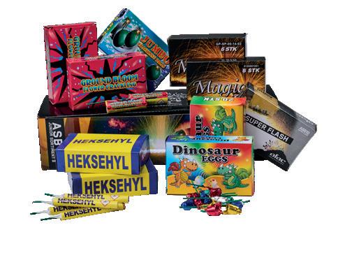 FYRVÆRKERIPOSTEN 2022 31 JUNIORARTIKLER PAKKER FOR 4 19995 SPAR 4980 TILBUD 23 Ta' 5 pakker betal for 4. gælder CK9, HE50, FF7, KS3, SS4, SF5, MS6, MB1. Normalpris 249,75 kr. VARENR. TILBUDSPAKKE 23 NEM MIN. 30 GRAM | 5 PAKKER BESTIL NR. 70 BESTIL NR. 69 MAGNESIUM BOMBER Kæmpe magnesiumbomber med adskillige blitzlys skinner aftenen igennem som lyn på jorden. Fed synsoplevelse! VARENR. MB1 NEM 76 GRAM | 24,5 MM | 4 STK. KNALDSTEN 4 stk. knitrende sten giver en unik oplevelse på jorden med blitz, stjerner og en slags glødeeffekt. VARENR. KS3 NEM 15 GRAM | 14 MM | 4 STK. BESTIL NR. 67 MEGA SPINNERE Hele 24 stk. mega spinnere giver en fed, glædende soleffekt på jorden. VARENR. MS6 NEM 57,6 GRAM | 16 MM | 24 STK. BESTIL NR. 68 4 stk. 4995 4 stk. 4995 24 stk. 4995 SPAR 20 %