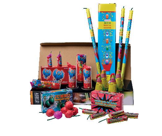JUNIOR SORTIMENTER FYRVÆRKERIPOSTEN 2022 22 JUNIORSORTIMENT FRIT VALG TA' 2 PAKKER FOR 329 SPAR JUNIORSORTIMENT 98 DELE En æske for de mindste fyrværkere fyldt med fyrværkeriartikler, der bliver på jorden. VARENR. ASB10 NEM 103 GRAM | 98 DELE BESTIL NR. 47 18995 JUNIORSORTIMENT 70 DELE Juniorsortiment med 70 små og mellemstore dele, alle med lunte. Til den øvede fyrværker lærling. VARENR. ASB11 NEM 101 GRAM | 70 DELE BESTIL NR. 48 18995