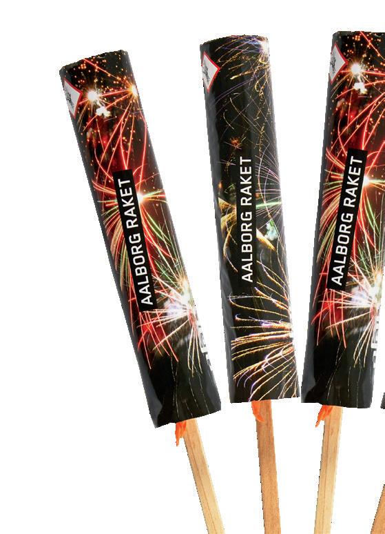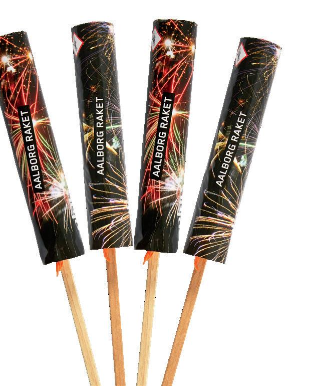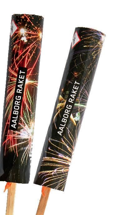 FYRVÆRKERIPOSTEN 2022 16 RAKETTER HUSK BRILLERNE for sikkerhedens skyld! Pr. stk. 7995 AALBORG CYLINDERRAKET Kl. 24 raket springer ud i en kæmpe guldpalme med dryssende stjerner i lilla eller sølv. VARENR. ARC0160 NEM 60 GRAM | 1 SKUD | 25 MM (17 GRAM MOTOR, 43 GRAM EFFEKT) BESTIL NR. 37 Pr. stk 9995 AALBORG KUGLERAKET Kl. 24 raket der hver giver et kæmpe brag af multicolored stjerner med crackling afslutning. VARENR. ARK0170 NEM 70 GRAM | 1 SKUD | 2" (17 GRAM MOTOR, 53 GRAM EFFEKT) BESTIL NR. 39 9995 SPAR 5995 TILBUD 11 TILBUD 11 2xARC0160 raketter. Normalpris 159,90 kr. VARENR. TILBUDSPAKKE 11 NEM 120 GRAM | 2 SKUD I ALT | 25 MM | 2 DELE BESTIL NR. 38 SPAR 37 %