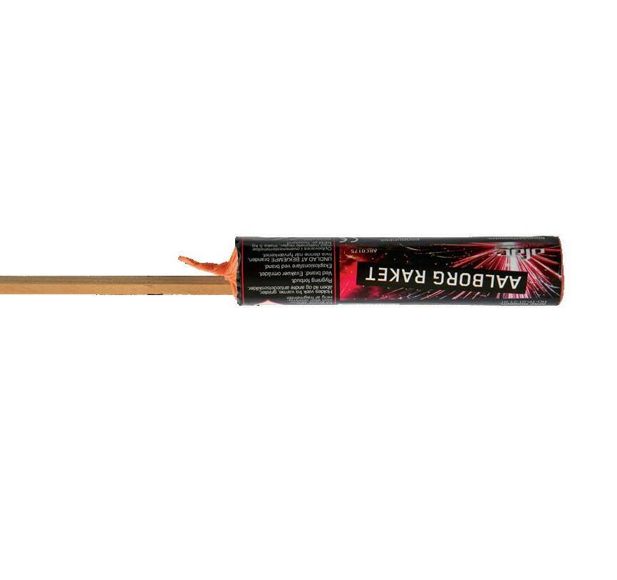 FYRVÆRKERIPOSTEN 2022 17 RAKETTER Pr. stk. 9995 AALBORG CYLINDERRAKET Super magisk raket med den flotteste palme, der spreder sine blade som et glimt på himlen og forsvinder stille som stjernedrys! Assorterede så farverne kan variere. VARENR. ARC0175 NEM 70 GRAM | 1 SKUD | 35 MM (17 GRAM MOTOR, 53 GRAM EFFEKT) BESTIL NR. 40 4 stk. 24995 AALBORG CYLINDERRAKETSORTIMENT 4 raketter der springer ud i røde og lilla palmer med guldstjerner, der langsomt drysser tættere på jorden. VARENR. ARC0450 NEM 200 GRAM | 4 SKUD I ALT | 20 MM | 4 DELE (50 GRAM PR. STK., 17 GRAM MOTOR, 33 GRAM EFFEKT) BESTIL NR. 42 TILBUD 12 2xARK0170 raketter og 2xARC0175 raketter. Normalpris 399,80 kr. VARENR. TILBUDSPAKKE 12 NEM 280 GRAM | 4 SKUD I ALT | 4 DELE BESTIL NR. 41 23995 SPAR 15985 TILBUD 12 SPAR 40 %
